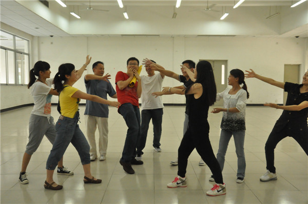 本网讯 7月13日下午,由人事处、教师发展中心主办的2013年新进教职工素质拓展培训在大学城举行。培训分室内、室外两个部分,分别在南校区教室楼D栋和大学生素质拓展营(素拓)营地进行。在培训师的带领下,新进教职工分6个小组进行了握手游戏、团队建设、驿站传书以及极限时速等游戏。所有新进教职工们兴致高昂,积极参与,乐在其中。