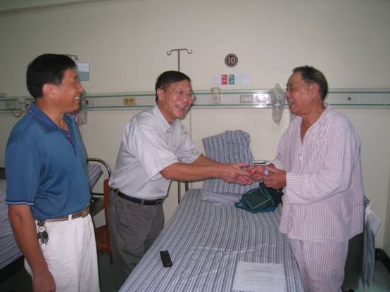 陈建平询问了朱道敏的病情和术后康复情况。离休支部老党员也特地委托王新贵代表离休支部为朱道敏老教授送上慰问金和老党员们的问候。