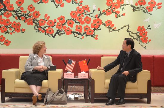 本网讯 7月2日上午,美国纽约市立大学皇后学院副校长伊丽莎白·亨德雷(Elizabeth Hendrey)一行来访我校。我校副校长方凡泉等在北校贵宾厅亲切会见来宾。据悉,我校计划在2014年春季起派遣学生赴皇后学院进行交换或实习,商议2+2双学位项目并派遣艺术学院老师赴皇后学院进行培训。