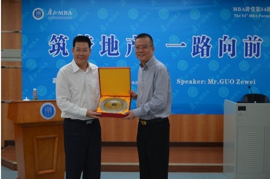 本网讯 “筑梦地产,一路向前”,6月30日下午,我校MBA学院主办的MBA大讲堂第54讲在北校区第九教学楼103丝纺讲堂举行。主讲嘉宾为广州尚东地产集团有限公司董事长郭泽伟。