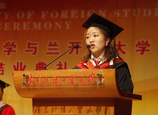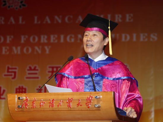 方凡泉致辞中回顾了广外和兰开夏大学的合作情况,他提到,如今越来越多的外国学生通过兰开夏大学选择来到广外深造,同时兰开夏大学也给越来越多广外学子提供了学习机会。2013年,兰开夏大学与我校不断改进国际班办学政策,改善教学模式扩大学生的知识储备,增强学生应变能力以应对新挑战,两校的合作取得长足进步。他希望2013届结业生铭记我校“明德尚行,学贯中西”的校训,在英国兰开夏大学努积极进取,树立终身学习的观念,争取获得更好的成绩。