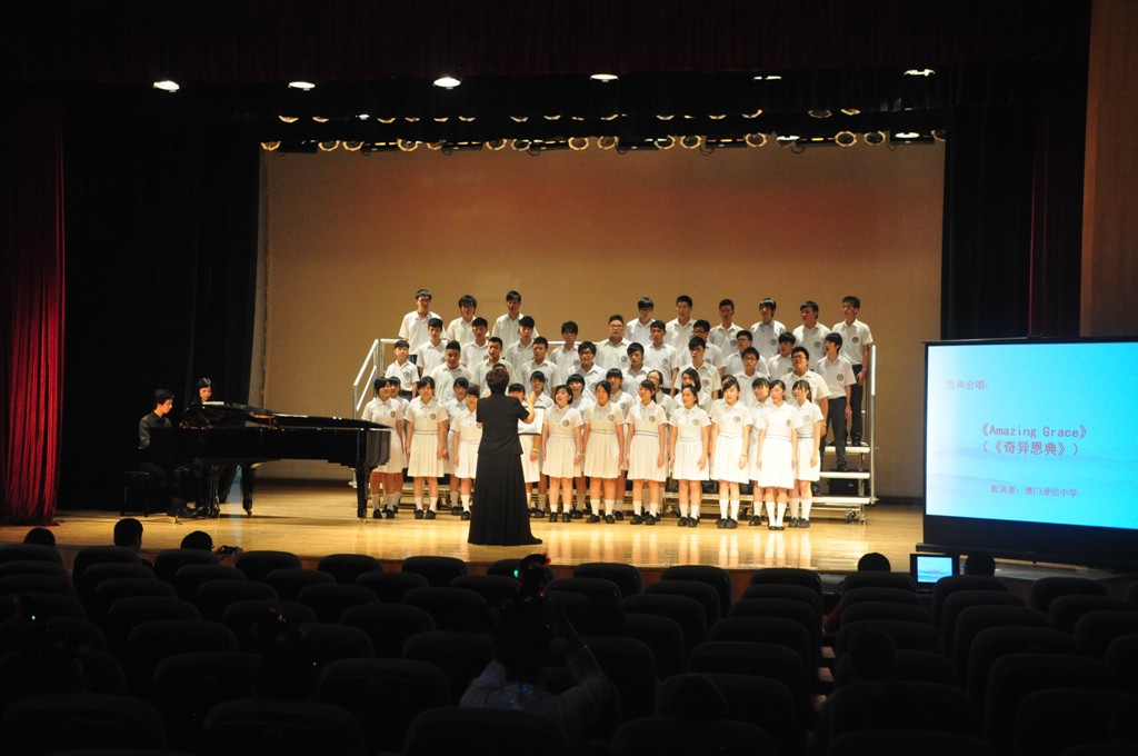 女生合唱团则为我们带来两首优美的圣诗曲目:《Flying free》与《Tomorrow shall be my dancing day》,合唱灵动怡人。最后,澳门浸信中学的同学们为我们带来了混声合唱《Amazing Grace》,不但表露出了他们对于信仰的坚定,也表达出了他们对于这次校际间交流的美好祝愿。