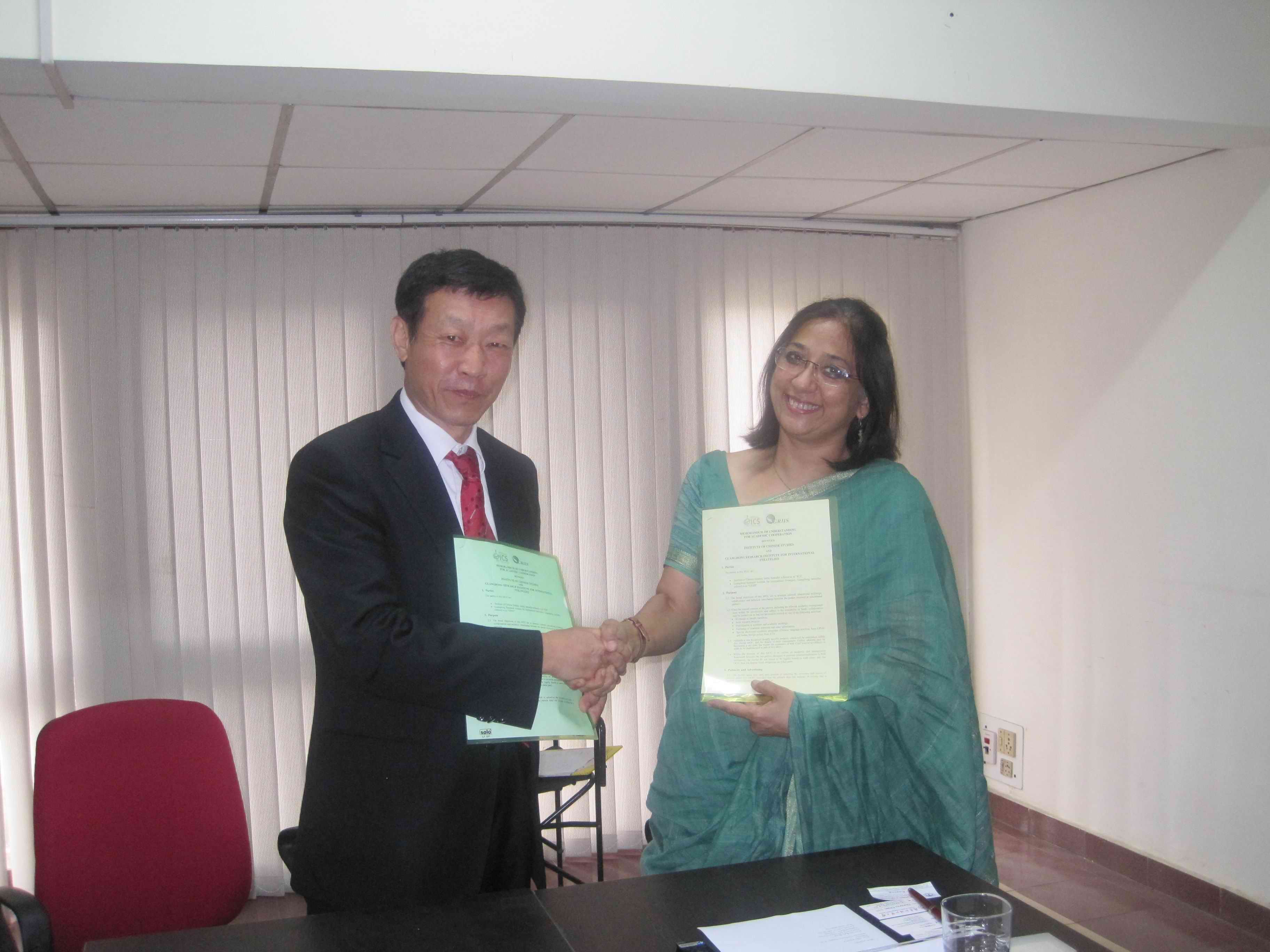 6月18日,许国彬访问了印度中国研究院。研究院院长艾嫘伽(Alka Acharya )及邵葆丽(Sabaree Mitra)等多名研究员参加了会见和交流。许国彬对印度中国研究院富有影响的研究表示赞赏,提出愿意为研究院提供各种相关资料和信息。艾嫘伽提出该院愿与我校广东国际战略研究院印度研究中心展开广泛的研究合作,共同为区域经济和社会发展做出贡献,双方还就具体的合作项目及合作计划进行了商议。随后,许国彬与艾嫘伽共同签署了合作备忘录。