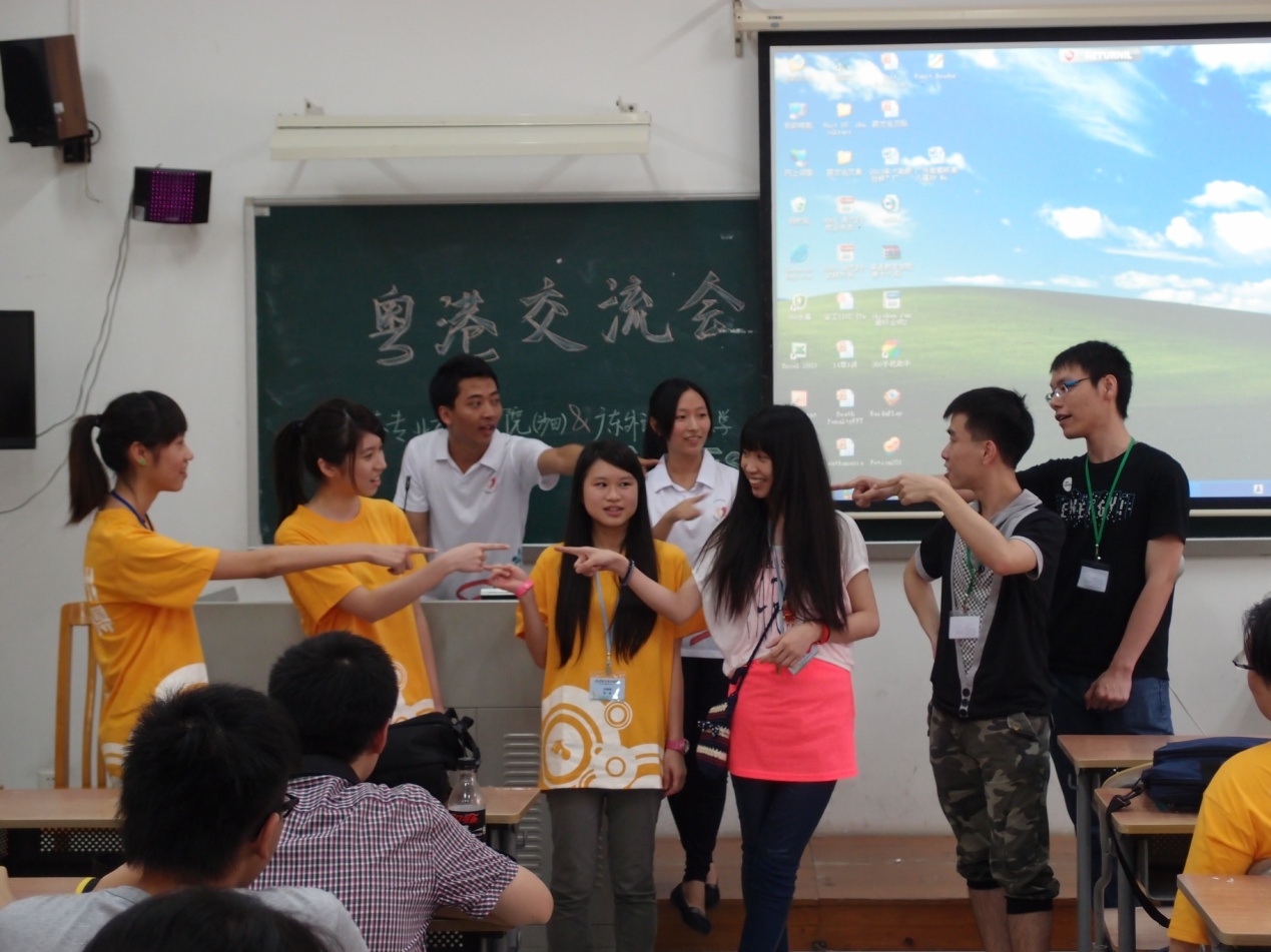 本网讯 2013年6月18日,由香港专业教育学院(沙田)与我校港澳台事务办共同主办、自强社承办的2013“踏足神州﹑薪火相传”学生交流体验营开营仪式在南校区教学楼E101举行。参加此次开营仪式的有来自香港专业教育学院(沙田)的老师和学生以及我校自强社的社长团和干部。 开营仪式正式时,自强社社长周炜列首先播放了一段我校的宣传片,使香港的师生们对广外有了初步的认识。接着,香港学生和自强社的干部被分成三个小组分别进行初步的接触与交流。两地学生热烈地讨论各自的校园生活与课余活动,阵阵的笑声不时从各小组传出。在接下来的游戏环节中,各小组香港学生代表的积极参与使现场气氛更为热烈。