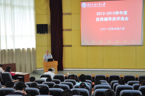 本网讯 6月8日下午,2012-2013学年度优秀辅导员评选会在南校八角楼会议室举行。我校党委副书记卢景辉,全体学生工作干部,学生代表出席了本次会议。经评议,陈娓、沈长霞、张璇和王迪四人被评为了2012-2013学年度优秀辅导员候选人。