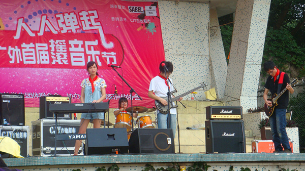 来自华南理工大学的小清新乐队“Bloody Pupil”,带着红领巾的他们仿佛就是四个可爱的小学生,演奏着欢快的《Sunshine》,给我们送来一阵清凉。“后摇也可以很自豪”,没有主唱的他们坚持着自己的音乐梦想,展示了音乐本身的纯粹,令人感动。
