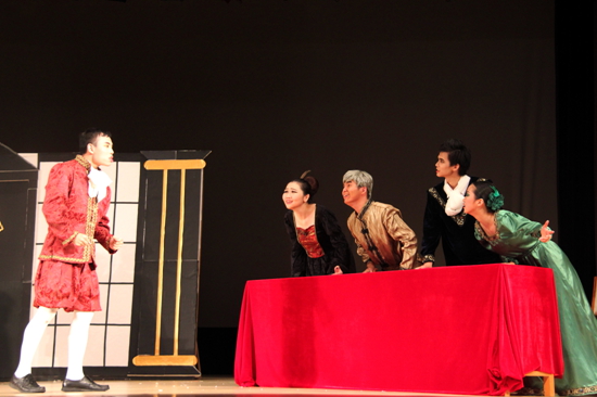 英文学院教授Duncan上台点评时说道,戏剧大赛对于学生而言准备是很困难的,原因一是与中文相比,英语对于学生而言是第二甚至第三种语言;二是戏剧大赛需把戏剧缩短成25分钟以内,所以剧本不管是近代还是古代都很难演绎;三是既有配音,又有演员,简直是由两个人扮演一个角色,这需要两个人的默契。不管怎样,学生面对困难表现出的勇敢,坚持与创新让他印象深刻。他说,Every year is different,every time the play performed is a new play.面对云山会堂与广州大剧院不同的舞台,不同的技术,学生能灵活处理,呈现出精彩的舞台表演。
