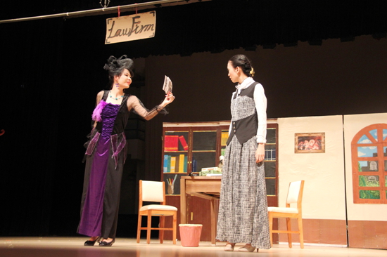 高级翻译专业的同学带来了《Mrs. Warren’s Profession》(华伦夫人的职业)。该戏剧指出了19世纪欧美统治阶级的财富是建筑在对人民的残酷剥削上,抨击了上流社会的堕落。华伦夫人的戏服雍容华贵,色彩艳丽,足以表现出华伦夫人的美丽富有。而她的女儿Vivie的服装却是朴素淡雅,透露出Vivie的与众不同,独立自主。戏服色彩的视觉冲击暗示着华伦夫人与其女儿截然不同的性格特征。女主角薇薇和母亲华伦夫人的促膝长谈和崩溃决裂那逼真的演出也将人物性格刻画得入木三分。