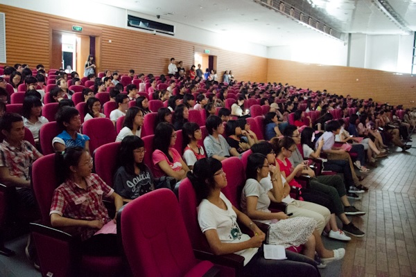 本次大赛由个人独白和电影配音两个环节组成。个人独白环节采用现场随机抽取的方式,从每个班中抽取两名同学。在抽号过程中,台下的英文学子有的镇定自若,胸有成竹;有的忐忑不安,缺乏自信;有的屏气凝神,渴望机会。最后,被抽中的“幸运儿”在同学们的掌声与欢呼声中登台应战。