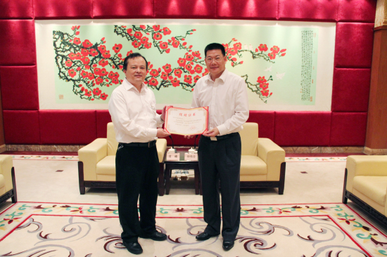 本网讯 5月29日上午,校友捐赠画作仪式在北校区行政楼一楼贵宾厅举行。校友凌峰为感恩母校,向学校捐赠了由著名画家王挥春所作的《岭南春来早图》。