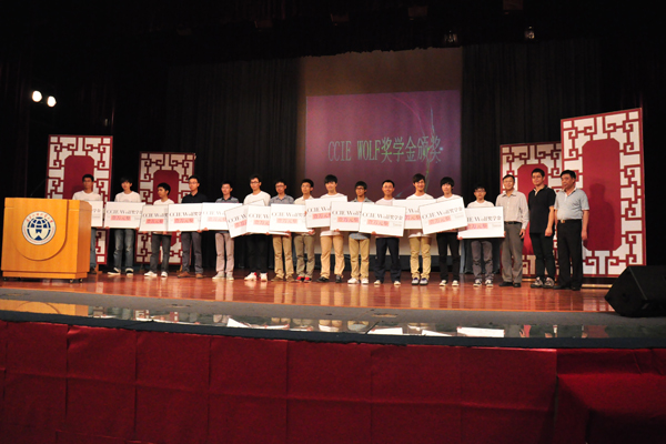 陈建平、姜灵敏、孙万一为信息学院CCIE证书的14名学生各颁发人民币一万元的奖学金。