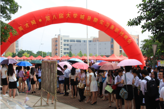 5月19日尽管闷雷滚滚,来自各大高校、各个年级的学子们依旧在我校南校区图书馆广场“征战”第八届大学城暑期实习兼职招聘会。求职者人数多达5000,63家企业总共提供千余个岗位。
