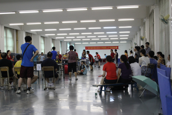 此次比赛由校工会主办、校体育部承办。决赛吸引了众多观众观战,赛事异常激烈。第一局由继教学院的丁龙对阵机关的钟志荣。钟志荣全神贯注,每球必争,凭借其势如破竹的扣杀率先为机关夺得一分。随后,继教学院穷追不舍,徐英和董黎明使出浑身解数,在第二、三局中扳回两分。第四局,双方比分步步紧追,机关队把比分拉平到2:2,将比赛带入白热化阶段。第五局决胜局,机关队的陈国兴以其淡定的台风和出色的发挥为机关再添一分,帮助机关队锁定胜局。