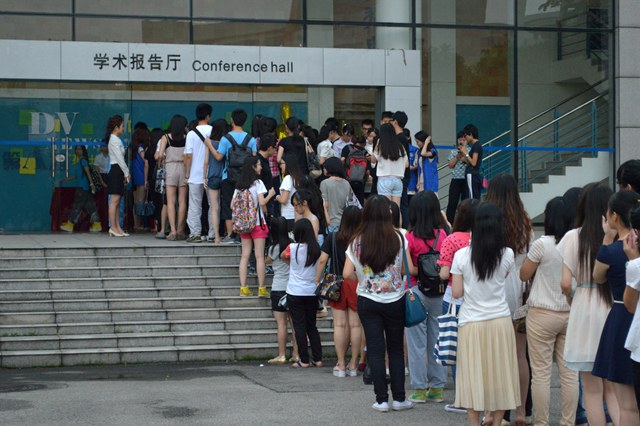 B8报告厅外等待检票的队伍