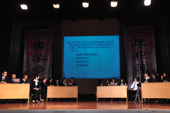 月9日晚,财经学院第四届财经学术节闭幕式暨“安永杯”财会税综合技能大赛决赛在南校区B8学术报告厅隆重上映。安永华明会计师事务所广州分所审计部高级经理周姗姗女士、审计部经理温博远先生、财经学院副院长邓可斌、党委副书记国佳等出席了本次闭幕式。在一段回顾视频之后,邓可斌为学术节致闭幕辞。他从校企合作、活动层次和参与度等三个方面概括总结了本届学术节的特点。“第四届财经学术节即将落幕,但是我们在学术探索上的脚步应当永不停止。”他说道,“希望同学们能将这种热情持续下去,将自己的梦想和中国梦紧密联系起来,努力去追求、去实现自己的梦想。”