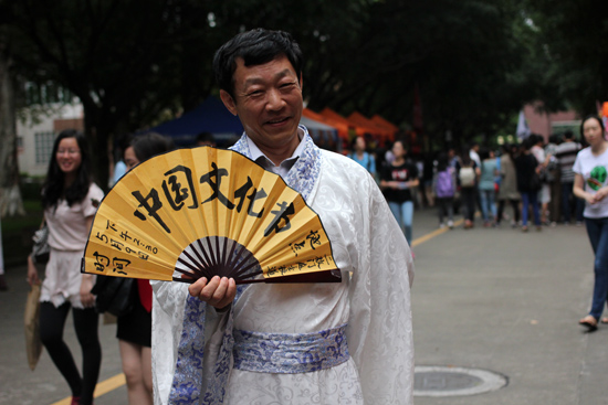 中文学院党委书记李和民、副院长刘小平、副书记李江等出席了文化展开幕式。李和民在开幕式上致辞:“中国文化节作为校园文化代表之一,承载了雅致、灵动的校园特色和盎然向上的精神面貌。”在他看来,大学就如一个泡菜坛子,泡菜的味道是咸是淡取决于泡菜水,而校园文化正是这样的泡菜水,浸泡着在其中学习生活的师生。“文化首先是民族的,再是世界的,同学们在加强外语学习的同时,更要重视拥有几千年文明史的传统文化。”