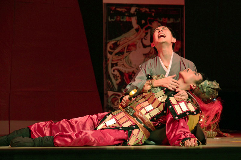 本网讯 夏天尚未至,东语学院的戏剧激情却已经燃起。4月27日晚上,在啦啦队充满激情与活力的表演中,东语学院2013年“山九杯”专业戏剧大赛拉开帷幕。日泰阿印4种语言6出戏剧异彩纷呈,带领观众开启一段充满异域风情的奇妙之旅。