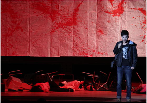 五幕戏,采用多种表演方式,回忆场景则借用光影效果,别出心裁,加之惊悚悬念的配乐和精细真实的道具,仿佛让人重临二战后犬神家的重重堕迷雾之中。正如全剧最后一句台词所言“这份扭曲的母爱终于从这份骇人的遗嘱中解脱出来了”。悬疑过后,台下观众爆发出如雷掌声,对犬神一家表达赞意。佐清母亲的扮演者,日语1102班的丘文菲最终凭借此角,力压群雄,荣获最佳女主角。