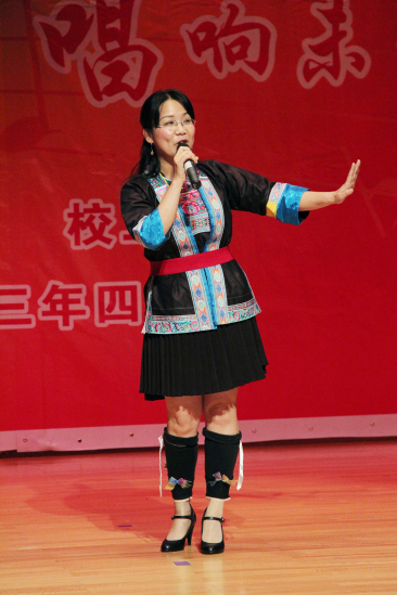 穿着民族服饰的苏春让人眼前一亮,她用淳美的声音演唱了自已的原创民歌《敬你一碗香油茶》,就像歌词所道“忘不了它”,她的歌声让人难以忘怀。