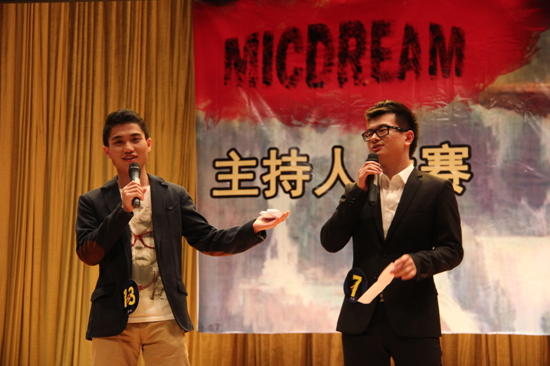 比赛正式开始前,主持人呼吁现场观众起立,为雅安地震灾区默哀一分钟。随后,主持人邀请胡文涛致辞。他认为这次比赛很好的阐释了“梦想”,让广大学子通过这个舞台实现他们的个人之梦。他祝愿我校今后能培育出享誉中外的主持人,并希望观众能享受此次比赛。