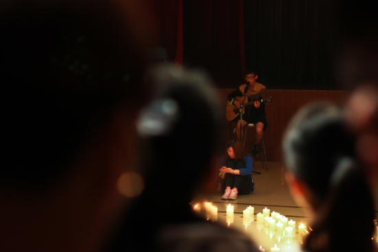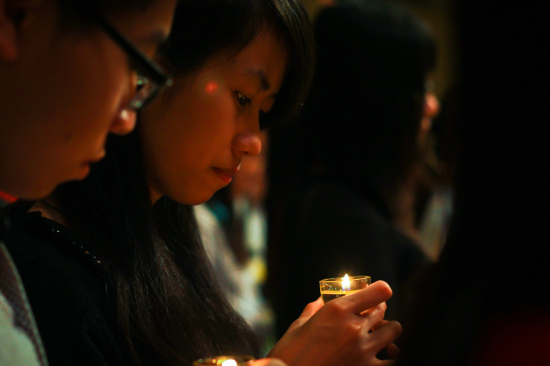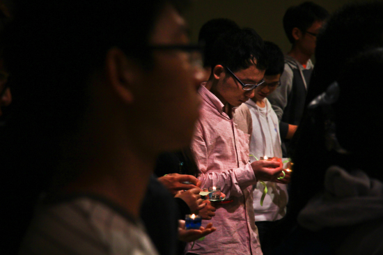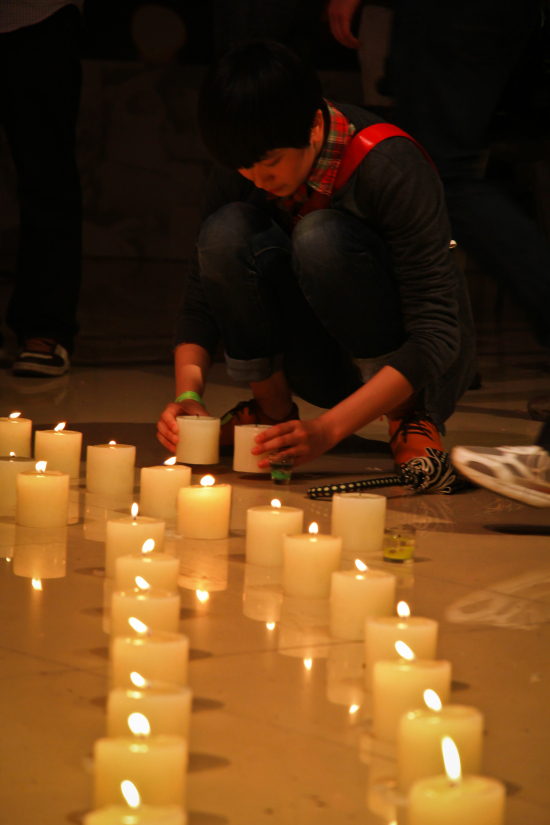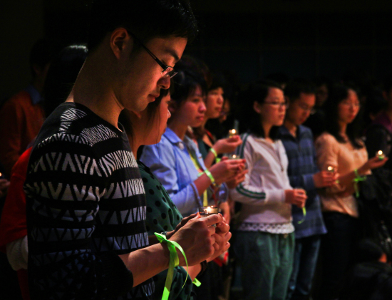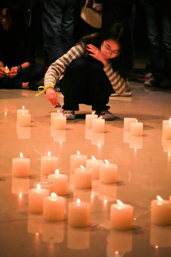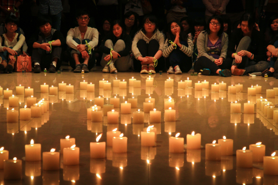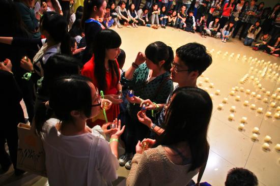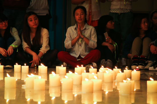 2013.4.20上午八时,四川雅安发生7.0级特大地震。2013.4.22晚上八时,“为雅安祈福”活动在广外举行。这天晚上,上百个来自大学城的学生聚在一起,手带绿丝带,手捧蜡烛为雅安祈福。