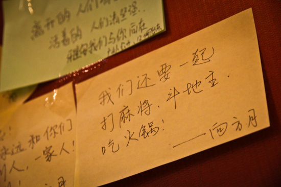 许愿墙上贴满了祝福——“我们还要一起打麻将,斗地主,吃火锅!”向方月。
