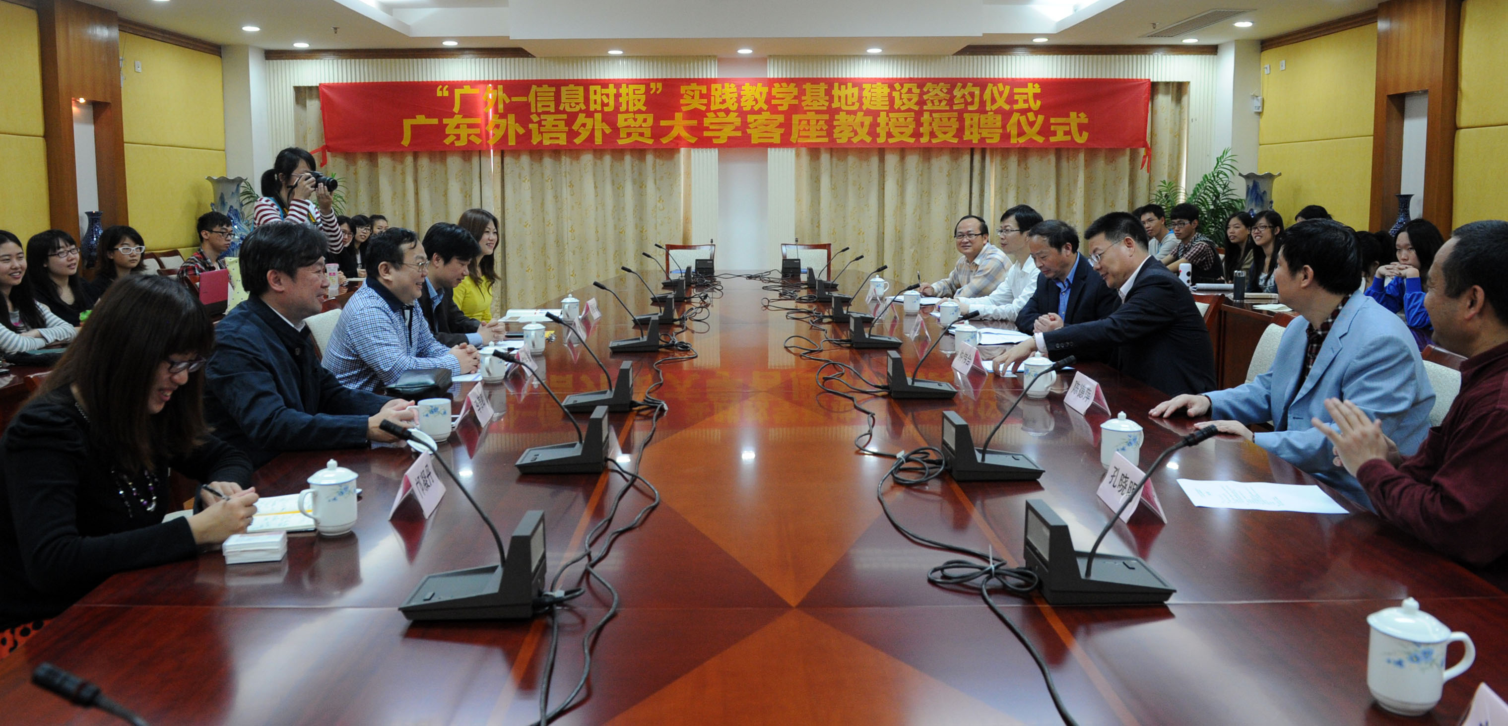 关于此次信息时报与我校的合作,钟华强着重提出三点:一是为学生实习提供便利条件,二是招聘新员工在同等条件下优先录取广外学生,三是双方建立交流机制,我校老师前往报社教授新闻理论方面知识,报社记者为广外学生传授新闻实践经验。