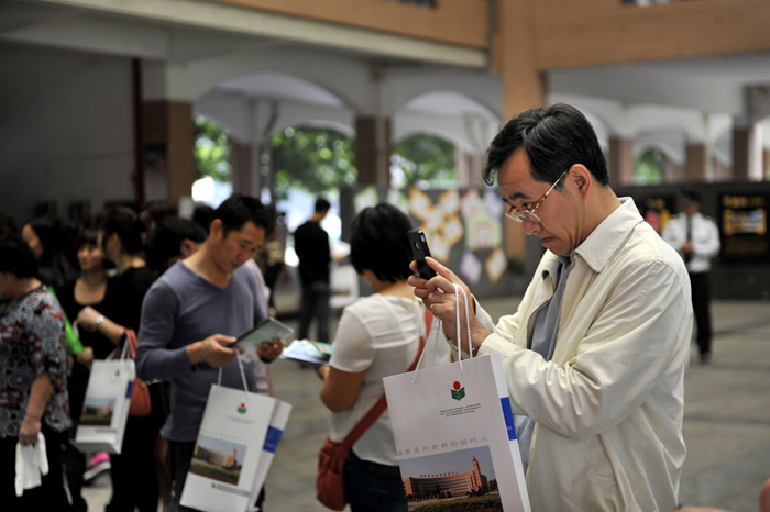 本网讯 4月17日,广外外校开展了宣传展览、校园参观、课堂体验等一系列活动迎来教学开放日。逾千名家长和学生到校参观。截至当日,外校中小学新生报名人数已达到2839人。