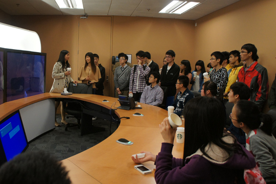 随后,师生们参观了思科员工的办公环境。黄文婷介绍到,思科的办公座位不是固定的,员工可以选择到任何一处空位办公,只要能达到工作的效果,也可以运用远程调控软件在家或异地办公。