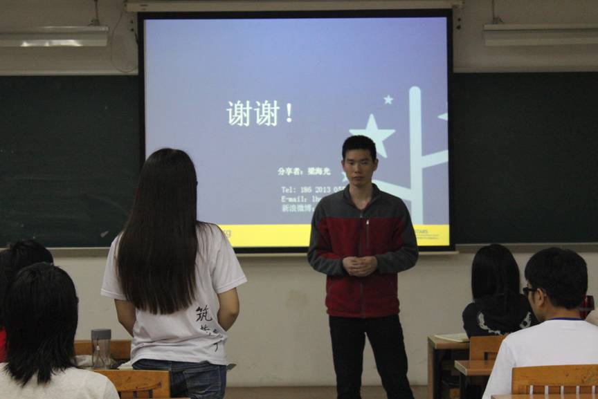 4月2日晚,由校团委青年志愿者行动指导中心举办的志愿大讲堂第二讲在南校区F209举行。广外08届商英学院校友、满天星青少年公益发展中心首席执行官梁海光受邀以“思考着的行动者”为主题展开演讲。