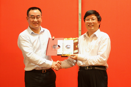 顾也力副校长莅临讲座并赠与黄国文纪念品