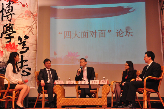 最令人激动的“四大面对面”论坛随之拉开帷幕。本次论坛以“博学笃志,切问近思”为主题,就财经热点问题以及职业发展进行了讨论。