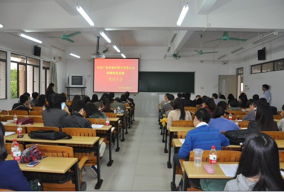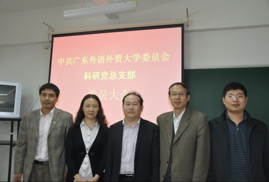 会上,科研党总支书记阳爱民就党总支成立以来的工作进行了汇报。他介绍说,科研党总支部由来自十三个科研机构和科研管理部门的43名教工党员和33名学生党员, 7名学生预备党员,共计83名党员组成。经集体研究决定,确定科研党总支的组织机构由5位委员组成,党总支下设9个党支部,其中,7个教工支部,2个研究生支部。他还提到,为了加强党总支建设,使党总支工作制度化、规范化,科研党总支部制定了《中共广东外语外贸大学科研党总支部工作条例》。