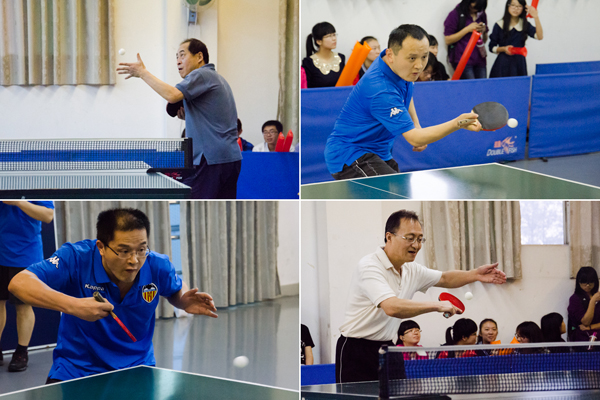 首先进行的是师生对抗赛,学院教职工与院乒乓球队队员按规则组队,组队厮杀。队员们拿出平时训练的热情,使出浑身解数,与老师们一决高下。现场喝彩阵阵,比赛十分激烈。