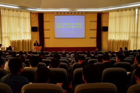 本网讯 3月6日下午,我校于南校区八角楼会议室召开2013年学生工作布置会暨学生工作干部培训会。参会人员有校党委副书记卢景辉、校学生处、校团委、学生就业指导中心全体人员,关工委、各学院分管学生工作负责人以及全体辅导员。此次会议由学生处处长植秀聪主持。