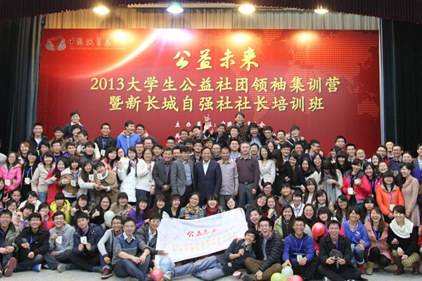 中国扶贫基金会新长城项目部举办公益社团领袖集训营,主要为热衷于公益活动的学生提供一个渠道,让高校学生更多的接触国内外公益事业,了解其运作并提升自身的领导能力,为中国公益培养人才。大学生公益社团领袖培训集训营暨新长城自强社社长培训班历时5天,大会通过公益行业分享、项目分享、社团能力培训、开拓视野和公益论坛等方式对公益社团负责人进行了全面培训。