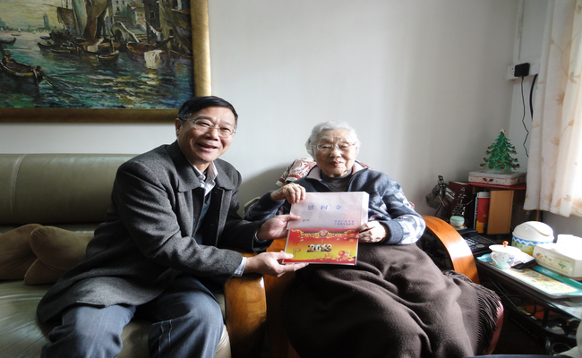 上午,陈建平首先来到林如彤同志家中慰问。陈建平代表校领导向林老拜个早年,并送上学校给老领导的节日慰问金,同时转交了省委省政府的节日贺卡和慰问金。林老今年97岁,是1938年入党的老党员,离休前是原广州外国语学院(广东外语外贸大学前身)副院长。林老看见陈建平一行人非常高兴,谈起过去的一年学校教育事业的发展、白云山隧道项目暂缓建设的好消息以及对新的一年的美好愿景,林老对省委省政府和学校党委、校领导的关怀表示非常感谢。