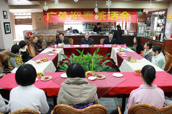 本网讯 1月18日上午,我校留校迎春茶话会同时在北校云山咖啡屋及南校云山水榭举行。校领导对留校学生进行慰问,并提醒留校学生相关留校安全事项。校党委副书记卢景辉,学生处、保卫处、后勤处、团委的各部门代表与各学院辅导员、留校学生代表欢聚一堂。