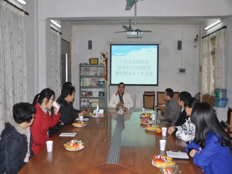 本网讯 冬阳和暖,金桂飘香,1月18日下午,广州各高校研究生培养单位思想政治教育和事务工作会议在我校研究生处一楼会议室举行。参加本次会议的有来自华南理工大学、华南师范大学、华南农业大学、南方医科大学、广东商学院等兄弟院校负责研究生思想政治教育的同事。我校研究生工作部部长康为茂出席本次会议。