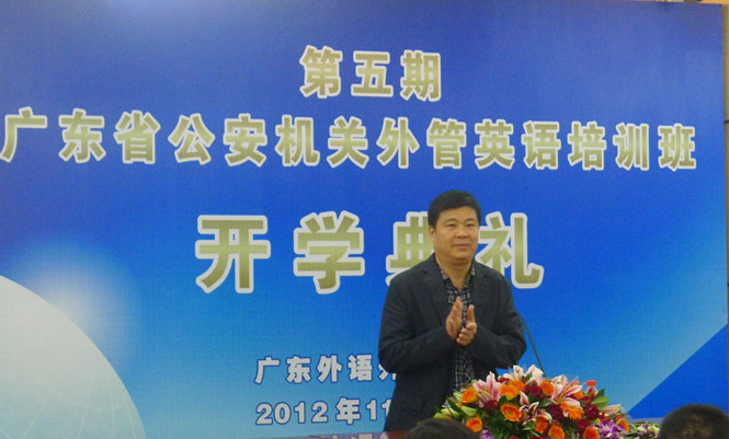 本网讯 11月19日下午,广东省公安机关第五期外管英语培训班开学典礼在北校举行。广东省公安厅出入境管理局陈敏局长、副校长陈德萍、商英学院领导班子全体成员、法英系教师代表、广东省公安机关第五期外管英语培训班学员和商英学院英语(国际经济法)部分学生参加了此次开学典礼。典礼由商英学院副院长吴易明主持。