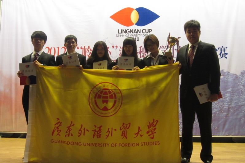 又讯 2012年“岭南杯”深港穗大学生校际辩论赛于11月17-18日在深圳大学科技楼举行,我校德思团队中文辩论队六位优秀辩手在指导老师毛国民的带领下,代表我校参加本次比赛并荣获季军。