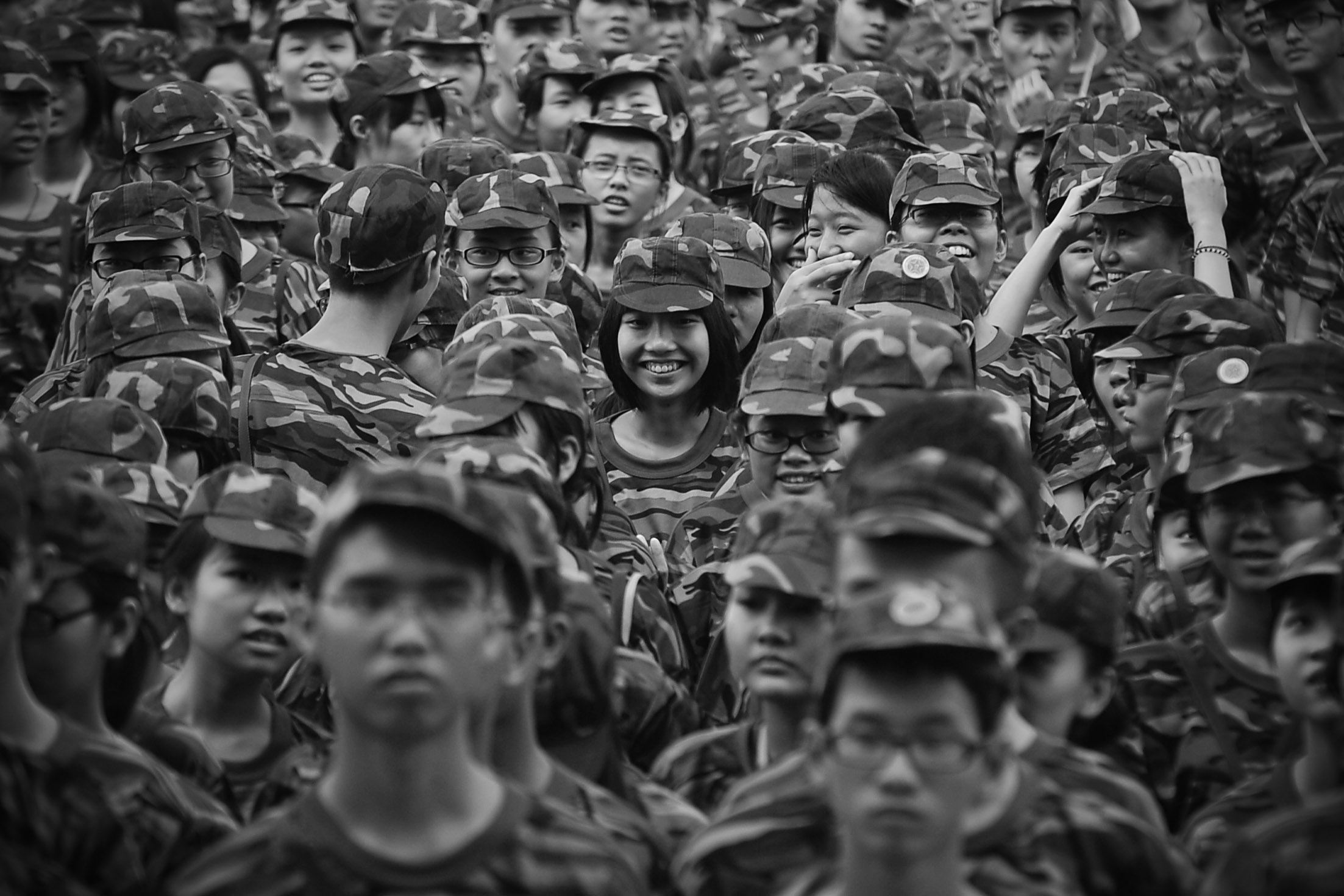 当问及他最喜欢的照片的时候,高坚笑着说:“当然是获得一等奖的那张啊。”他认为,拍摄《笑容》的难度较大,虚实结合,突出了一张笑脸,很不容易。而拍摄《笑容》的王雨渤则说在没有拍照之前,脑子里就有了这样的构图。“想要在密集的人群中寻找视觉的冲击力,一个比较有意思的中心,突然这个女孩子就笑了”。他阐述道,《笑容》表现的是一个新的个体融入一个新的集体的意识。
