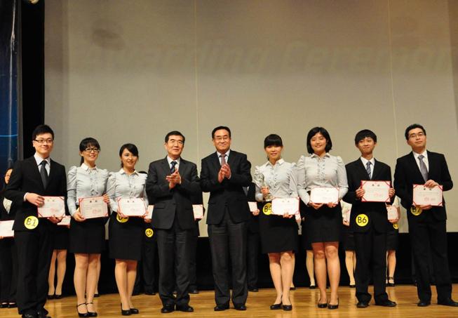 领导嘉宾为获奖学生颁奖