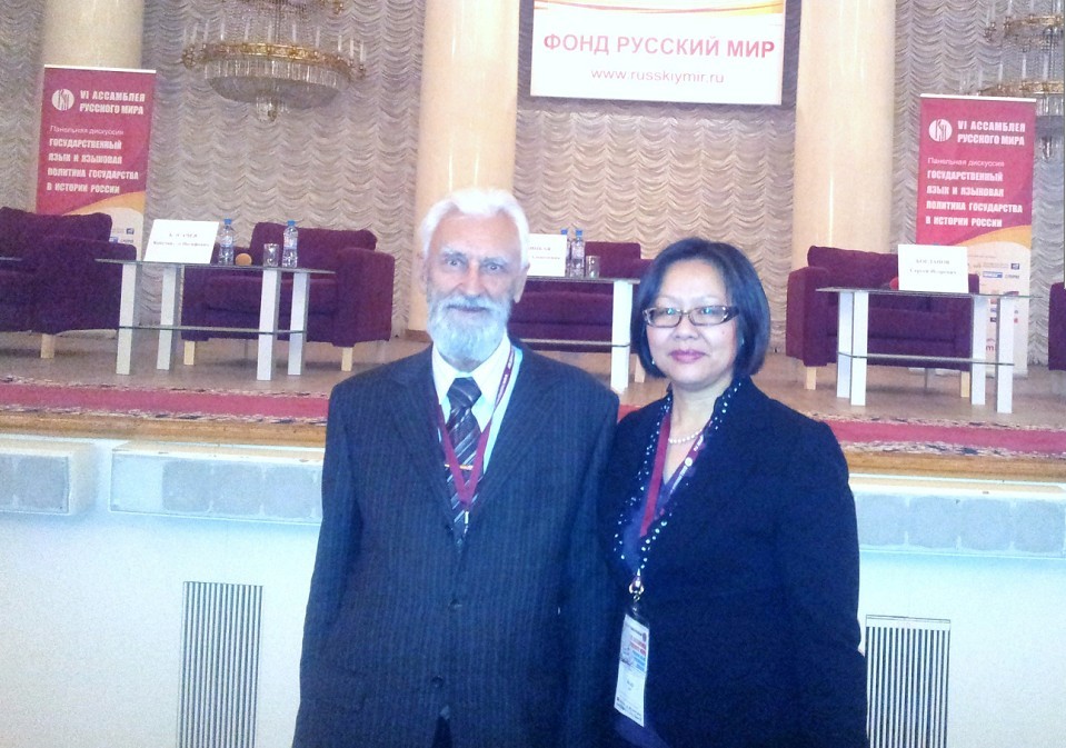 杨可与俄语世界基金会董事会成员科斯托马洛夫教授合影