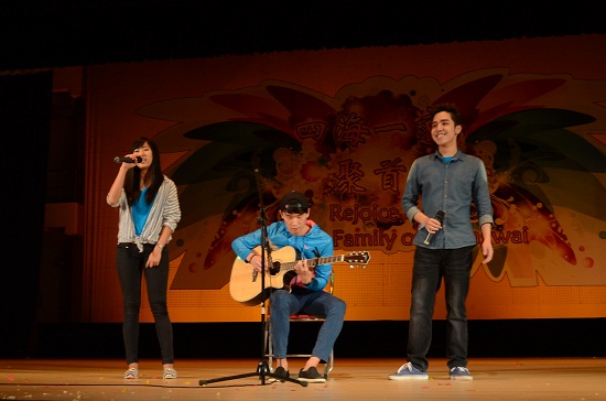 来自南校区的留学生也参与了本次晚会的演出,他们表演的“Shuffeling”融合了吉它、和声和舞蹈三种形式,而且还邀请台下观众上台一起跳舞助兴。