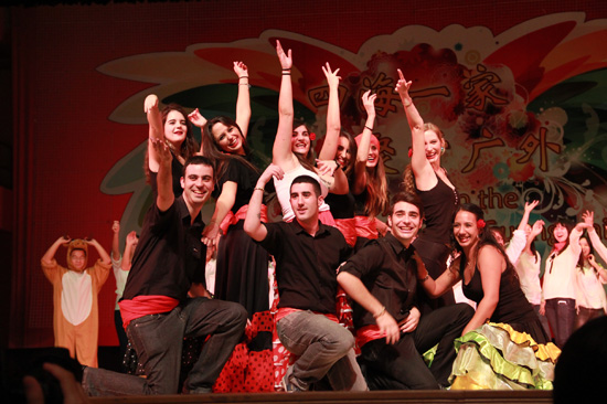 西班牙留学生David扮演斗牛士,再现了一段现代西班牙斗牛场景,在现场掀起了一阵热浪;喀麦隆学生的机械舞及伊朗留学生表演的劲爆街舞赢得了台下的阵阵掌声和欢呼声。