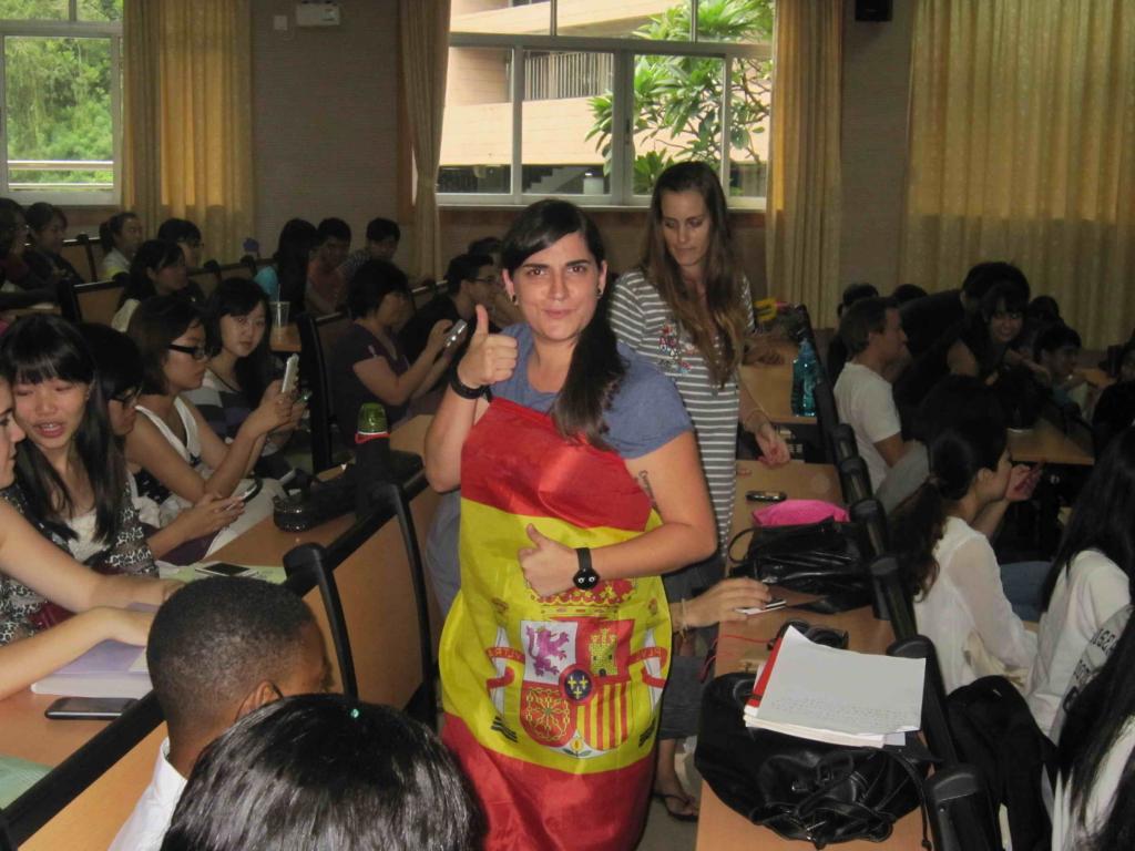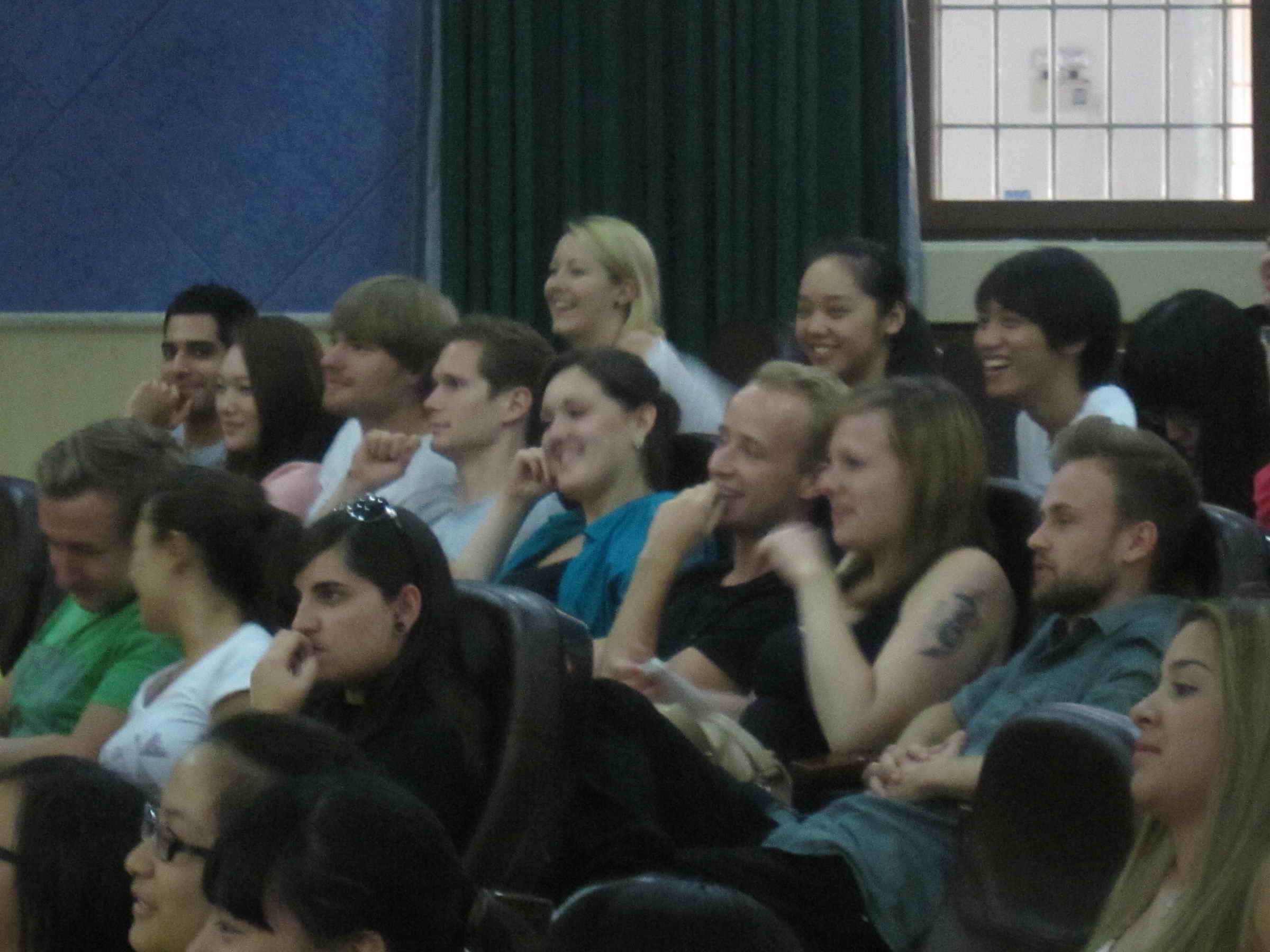 26日是外国文化讲座活动的最后一天,负责演讲的国家在原来印度尼西亚、安哥拉、西班牙、委内瑞拉、吉尔吉斯斯坦五个的基础上增加了三个国家——刚果(布)、厄瓜多尔和巴拿马,他们在见证了前几天讲座的成功举办后,就纷纷地临时报名,争取机会能够在众人面前介绍自己的国家。当天观众席上座无虚席,甚至连后排的过道都站满了人,而负责演讲的外国留学生也不负众望,纷纷各出奇招,生动形象地介绍自己的国家,获得在场所有观众的阵阵喝彩。