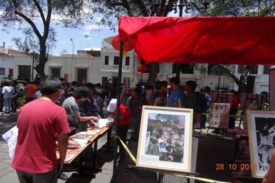 本网讯 2012年10月22—27日,我校与秘鲁圣玛利亚天主教大学合作建设的孔子学院在当地举办了规模空前的中国文化周,受到当地民众的热烈欢迎。文化周的举办也使阿雷基帕这个秘鲁第二大城市掀起一股中国热。