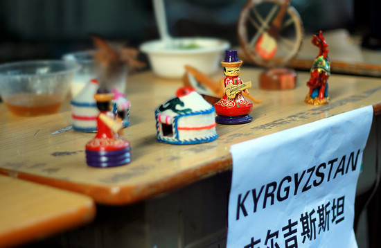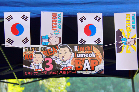 除了以美食作为卖点,每个摊位都各出奇招来吸引人流。来自俄罗斯、泰国、越南等国家的留学生穿起了传统服装来赢取关注。各国摊位的招数层出不穷:日本男扮女装的COSPIAY赚足眼球;马达加斯加的黑美人们发挥自己与生俱来的舞蹈天赋,载歌载舞招来客流;乌兹别克斯坦的留学生在传统音乐中跳起热情奔放的舞蹈;西班牙也使出近年来的“绝招”——两元一香吻,引起在场的同学尖叫连连,成功地炒热摊位气氛;哈萨克斯坦搭起了有别一般摊位的独特帐篷,据留学生介绍,为了展现国家的传统文化,他们花了两个小时搭起这一仿造古代居住场所的帐篷;韩国摊位也贴满了最近红遍全球、《江南style 》的主唱Psy的卡通海报;还有我校环保协会以《还珠格格》为主题的“素芳斋”摊位。