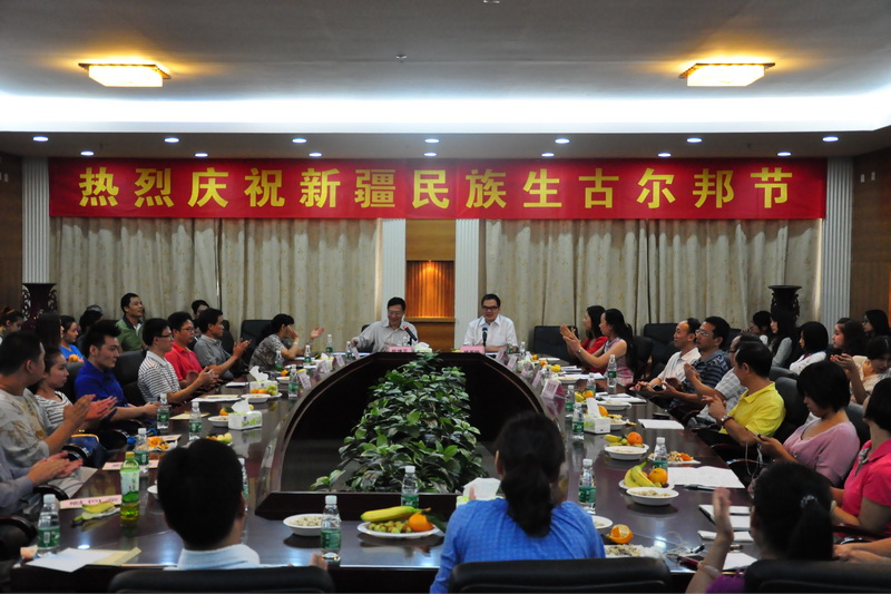 本网讯 10月25日下午,“庆祝新疆民族生古尔邦节”座谈会在南校举行。校党委副书记陈建平、学生处处长植秀聪、校团委书记谢秀兰、就业指导中心主任赵烨等与我校81位新疆民族生共同庆祝新疆民族生古尔邦节。座谈会由植秀聪主持。